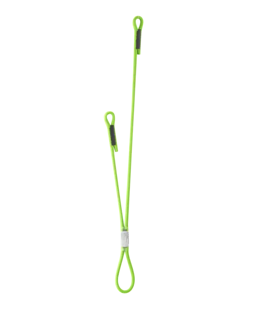 Talabarte assimétrico em Y com sistema de auto-segurança, confeccionado em corda dinâmica absorvente de energia (SWIFT 48 PRO DRY 8,9 MM). Os dois braços de fita de comprimentos diferentes (75 cm/40 cm) permitem posicionamento e uso individualizados, por exemplo, para rapel. A alça grande facilita a fixação ao arnês por meio de um nó de alça.